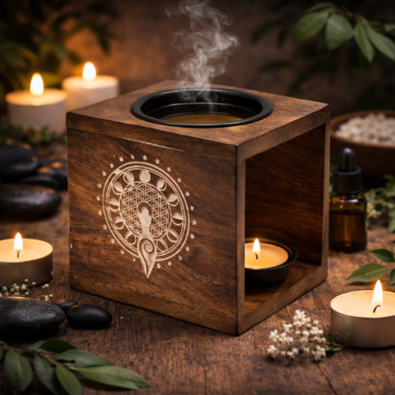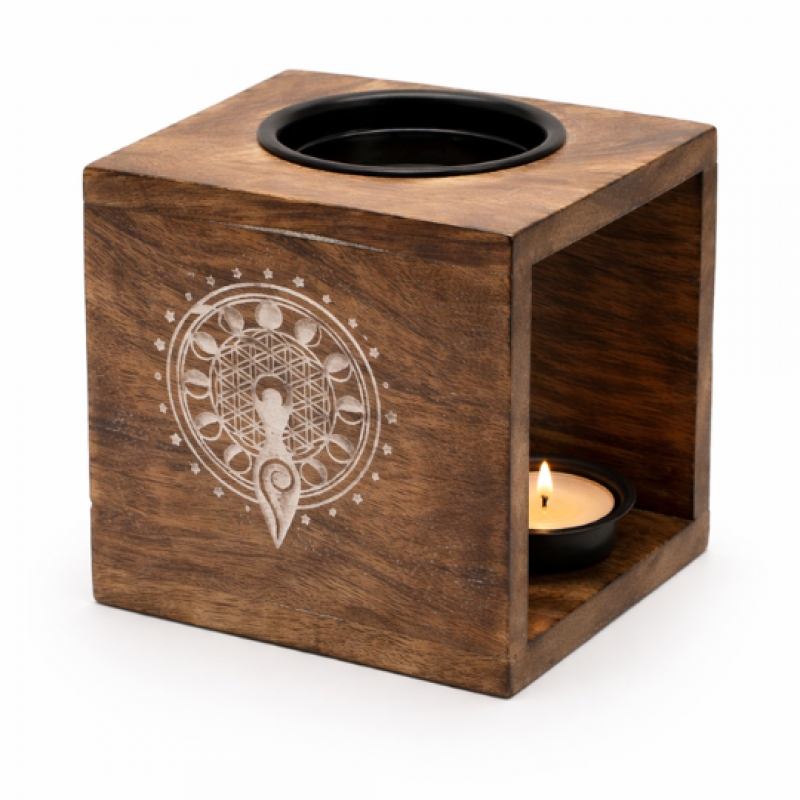 Arzator Mare Patrat pentru Uleiuri din Lemn de Mango – Zeita Lunii
