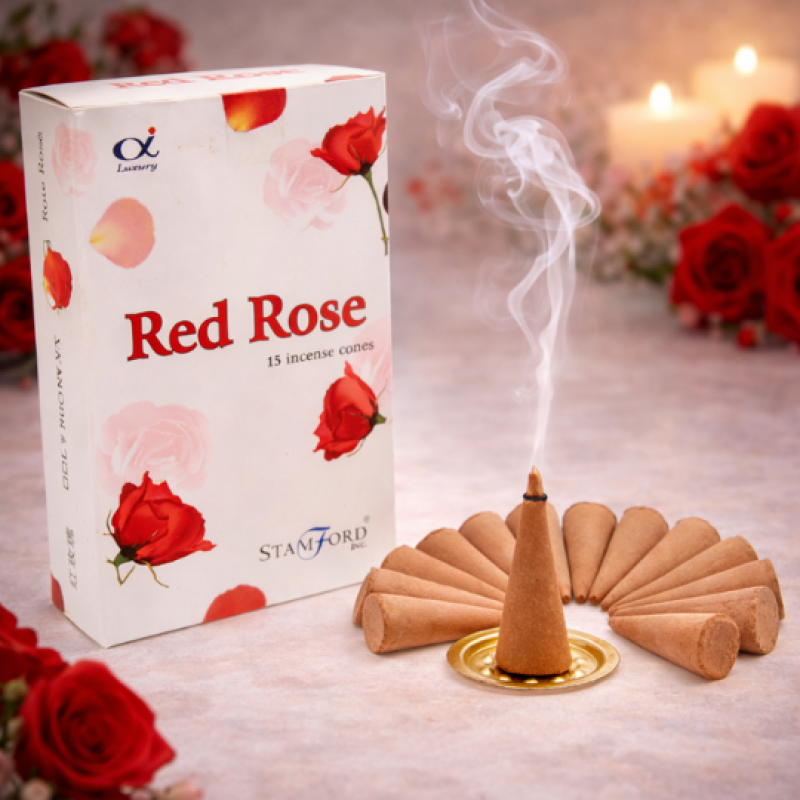 Conuri Parfumate Trandafir Rosu – Set 15 Conuri cu Suport