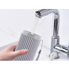 Are un snur practic pentru transport sau agatare pe un carlig. In plus, o parte poate fi folosita ca o cana pentru apa de gura dupa periajul dintilor.