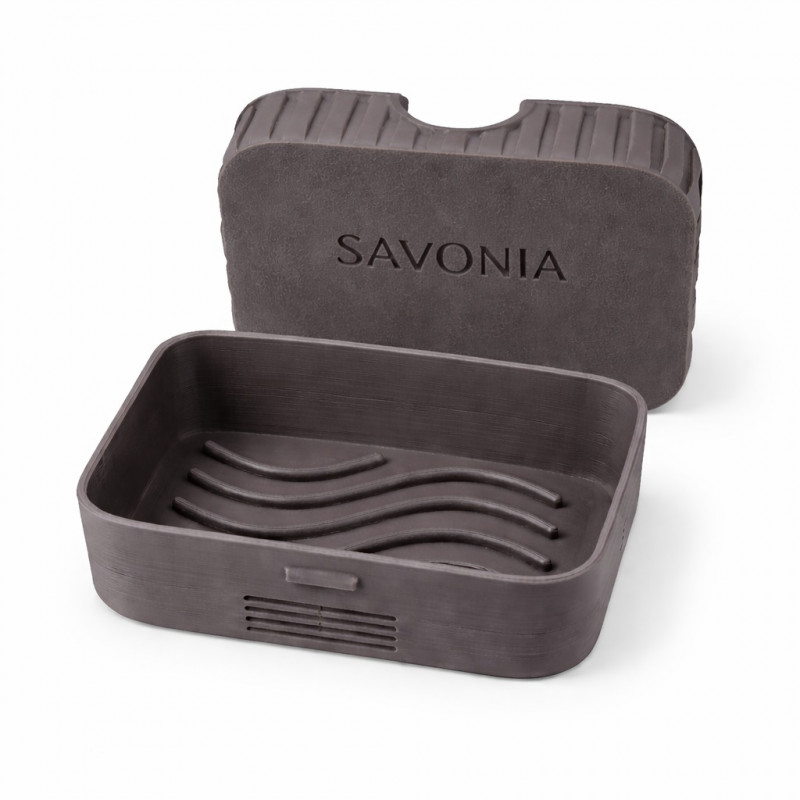 Forma sa compacta si functionala protejeaza sapunul natural in timpul transportului, iar interiorul tip grila permite scurgerea eficienta a apei, mentinand sapunul uscat si prelungindu-i durata de viata. Capacul solid, personalizat cu logo Savonia in relief, inchide perfect si ofera siguranta in bagaj sau geanta.