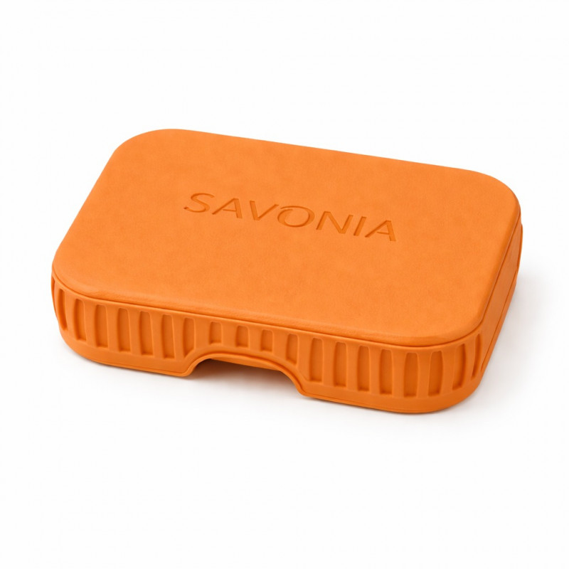 Forma sa compacta si functionala protejeaza sapunul natural in timpul transportului, iar interiorul tip grila permite scurgerea eficienta a apei, mentinand sapunul uscat si prelungindu-i durata de viata. Capacul solid, personalizat cu logo Savonia in relief, inchide perfect si ofera siguranta in bagaj sau geanta.