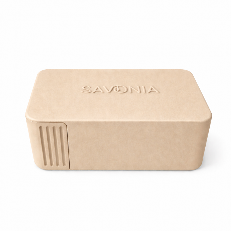 Forma sa compacta si functionala protejeaza sapunul natural in timpul transportului, iar interiorul tip grila permite scurgerea eficienta a apei, mentinand sapunul uscat si prelungindu-i durata de viata. Capacul solid, personalizat cu logo Savonia in relief, inchide perfect si ofera siguranta in bagaj sau geanta.