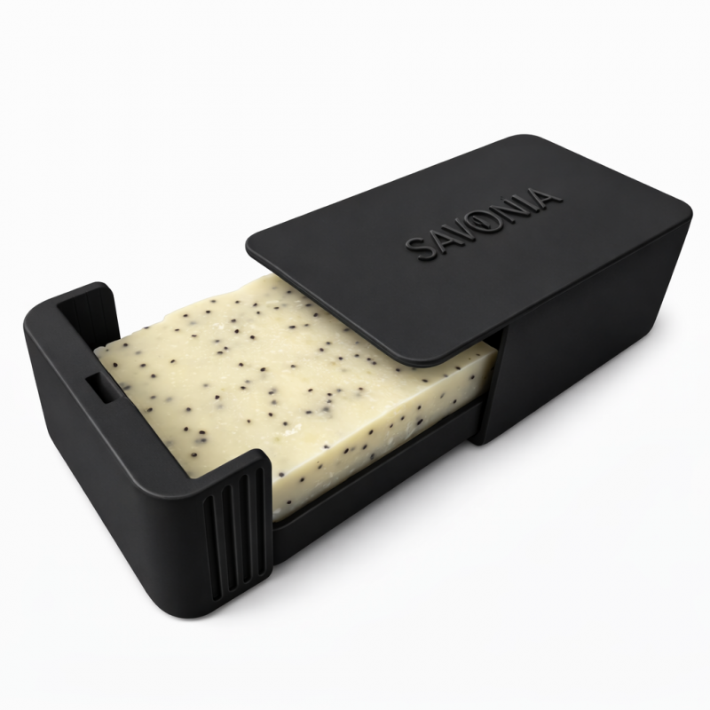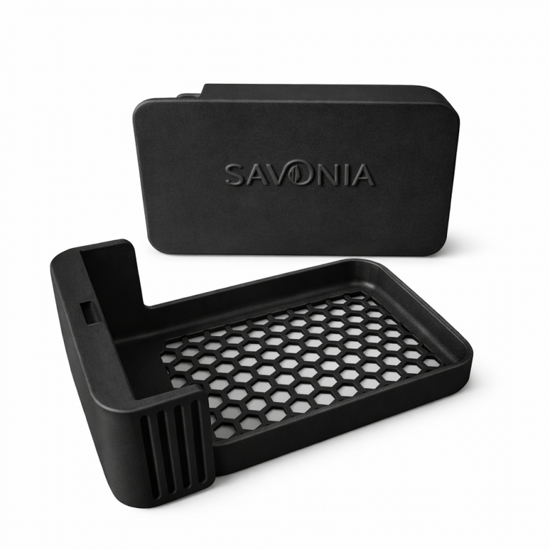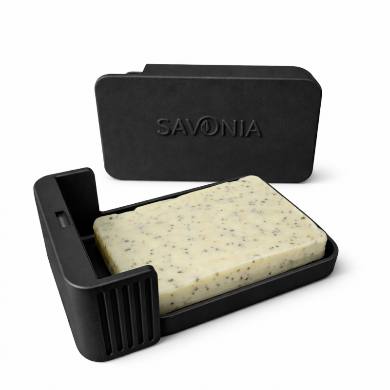 Forma sa compacta si functionala protejeaza sapunul natural in timpul transportului, iar interiorul tip grila permite scurgerea eficienta a apei, mentinand sapunul uscat si prelungindu-i durata de viata. Capacul solid, personalizat cu logo Savonia in relief, inchide perfect si ofera siguranta in bagaj sau geanta.