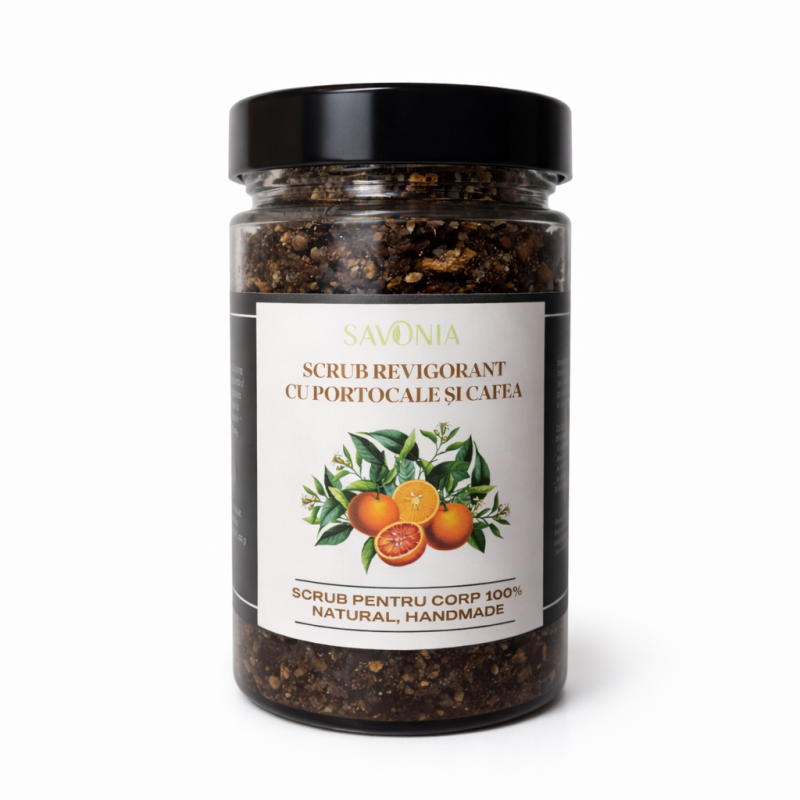 Scrub 100% Natural Revigorant cu Portocale si Cafea, Savonia, 300 gr
