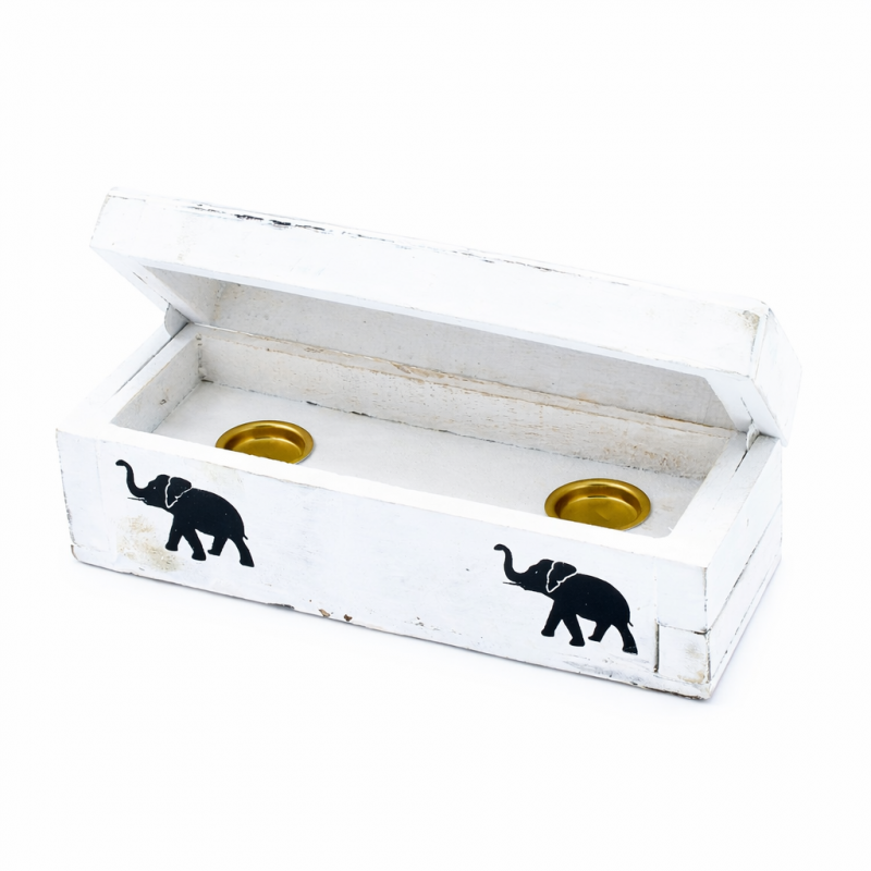 Suport pentru Conuri Parfumate Alb Spalat – Cutie 15 cm – Lemn Mango