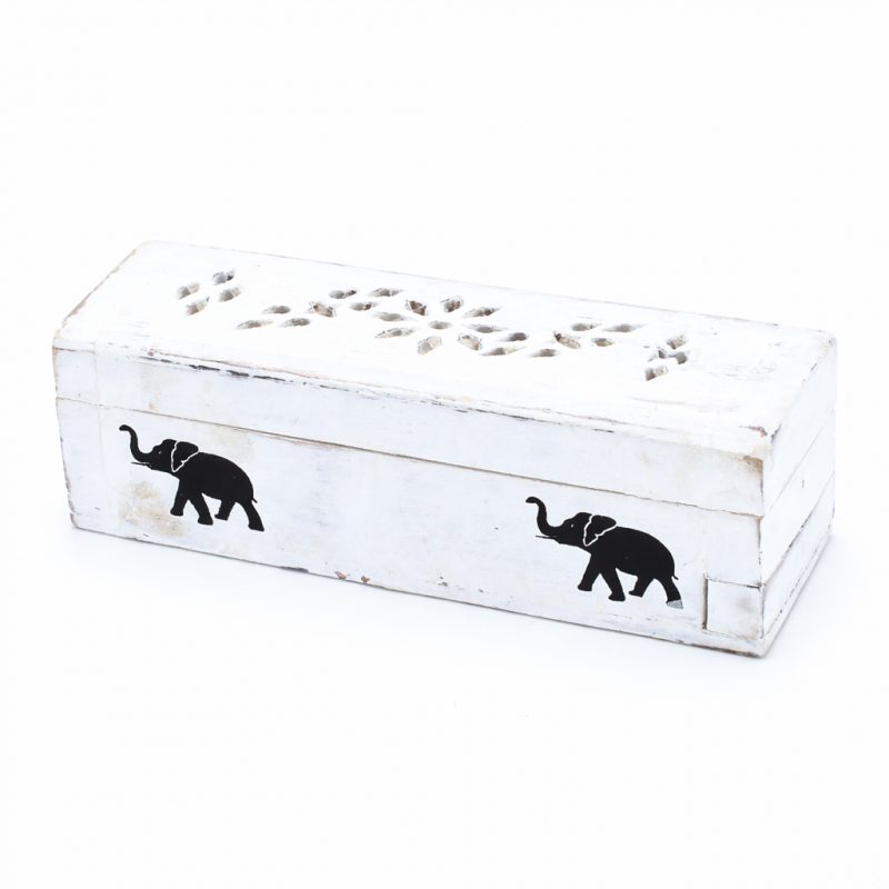 Suportul pentru Conuri Parfumate Alb Spalat – Cutie 15 cm este realizat in India din lemn de mango, material apreciat pentru rezistenta si textura sa naturala. Aceasta regiune are o traditie indelungata in productia artizanala de obiecte din lemn, fiecare piesa pastrand un caracter autentic si lucrat cu atentie.