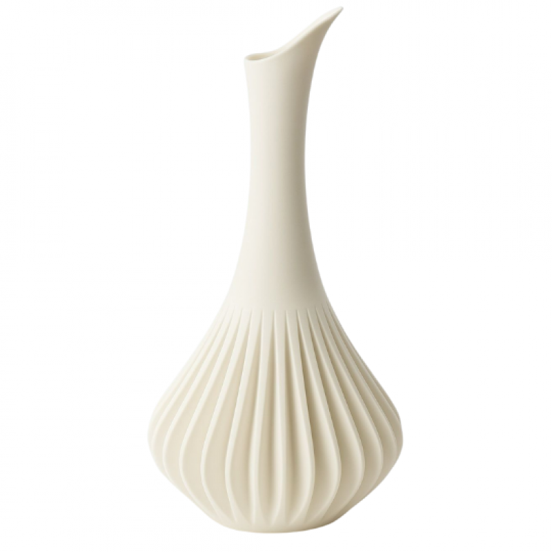 Vaza 3D „Lumină”, creată în atelierul Savonia, impresionează prin silueta sa zveltă și textura fină, inspirată de faldurile unei petale.